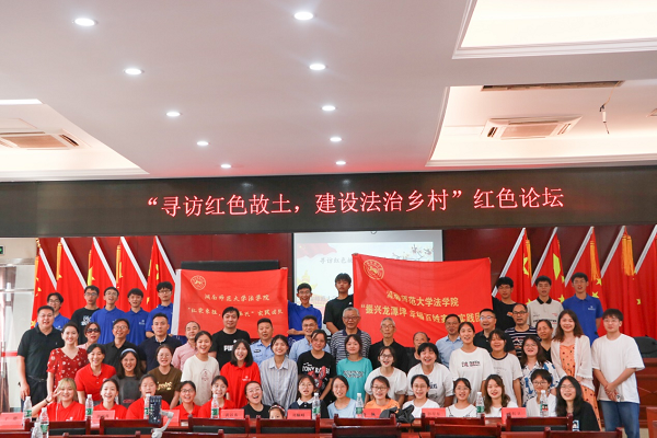 (通讯员 唐铭泽 帅政 匡宇晗)7月14日下午,38238a威尼斯欢迎你威尼斯官网赴张家界市桑植县龙潭坪镇暑期实践团在龙潭坪镇政府五楼会议室召开主题为“寻访红色故土,建设法治乡村”的红色论坛。龙潭坪镇副镇长吴卫华、司法所所长谷辉、威尼斯官网党委书记唐建文、党委副书记曹俊峰、刘健教授、教职工党员代表、研究生党员代表及本科生党员代表等出席会议,队员熊正韬主持本次论坛。
